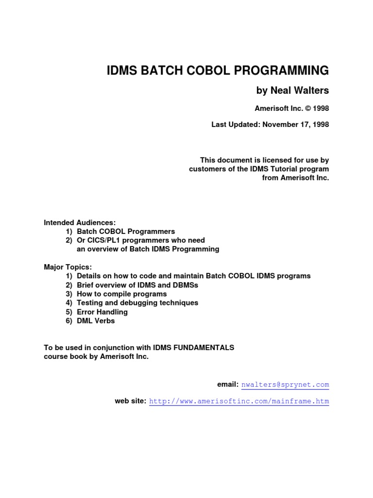 IDMS Batch COBOL Programming Databases .K views,,IDMS Batch COBOL Programming Databases .K views,